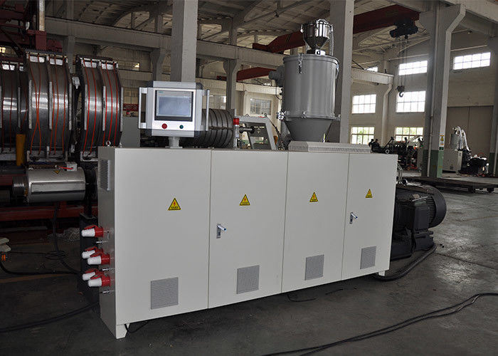 Штрангпресс высокой эффективности конструирован для трубы HDPE, оборудованный с редуктором который высокоскоростной и малошумн, питаясь разделом с холодильным агрегатом и обращать спиральный паз, винт различного тангажа undulant который позволяет большему выходу, более низкой плавя температуре, и более низкому энергопотреблению.
