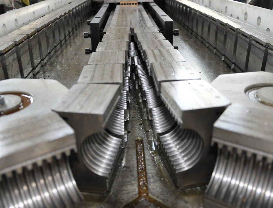 Эту машину штранг-прессования трубы HDPE можно оборудовать со штрангпрессом одиночного винта или параллельным двойным штрангпрессом винта. Перетаскивание с машины имеет трехстороннее, четырехпроводной, тип 6-пути. Автомат для резки имеет лезвие увидел вырезывание и планетарный режа метод. Huade также поставляет все виды прессформ.