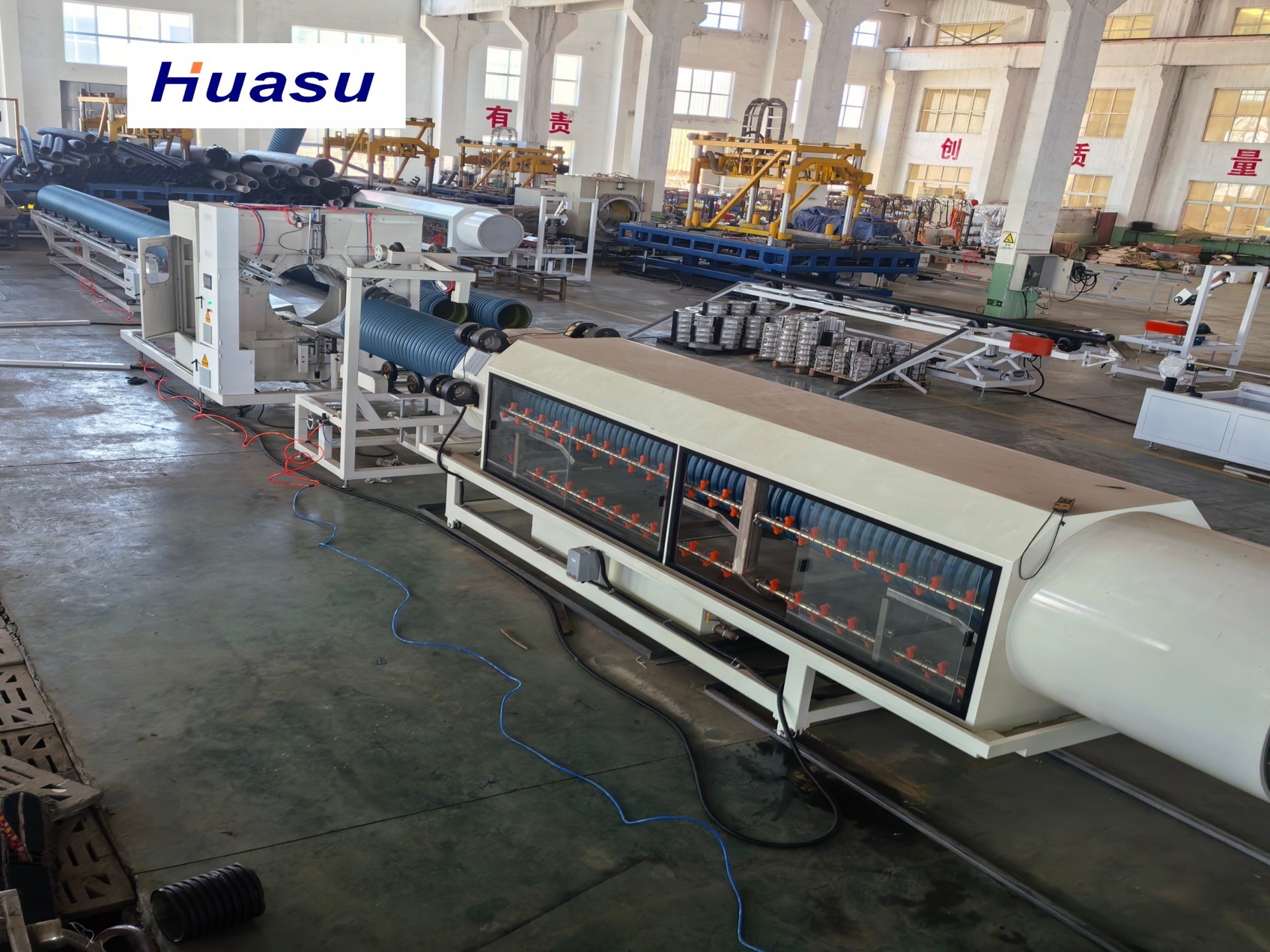 Волнообразная труба является третьим поколением улучшенного продукта Shandong HUASU.Выпуск экструдера и скорость производства трубы значительно увеличиваются на 20-40% по сравнению с предыдущим продуктом.