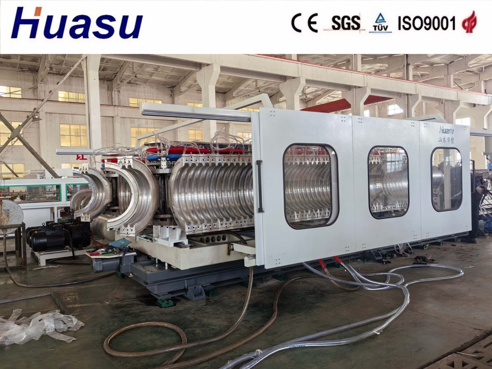 Двойная оболочка гофрированной трубы представляет собой третье поколение обновленного продукта, созданного Shandong HUASU.с увеличением производительности экструдера и скорости производства трубы на 20-40% по сравнению с предыдущей моделью.
