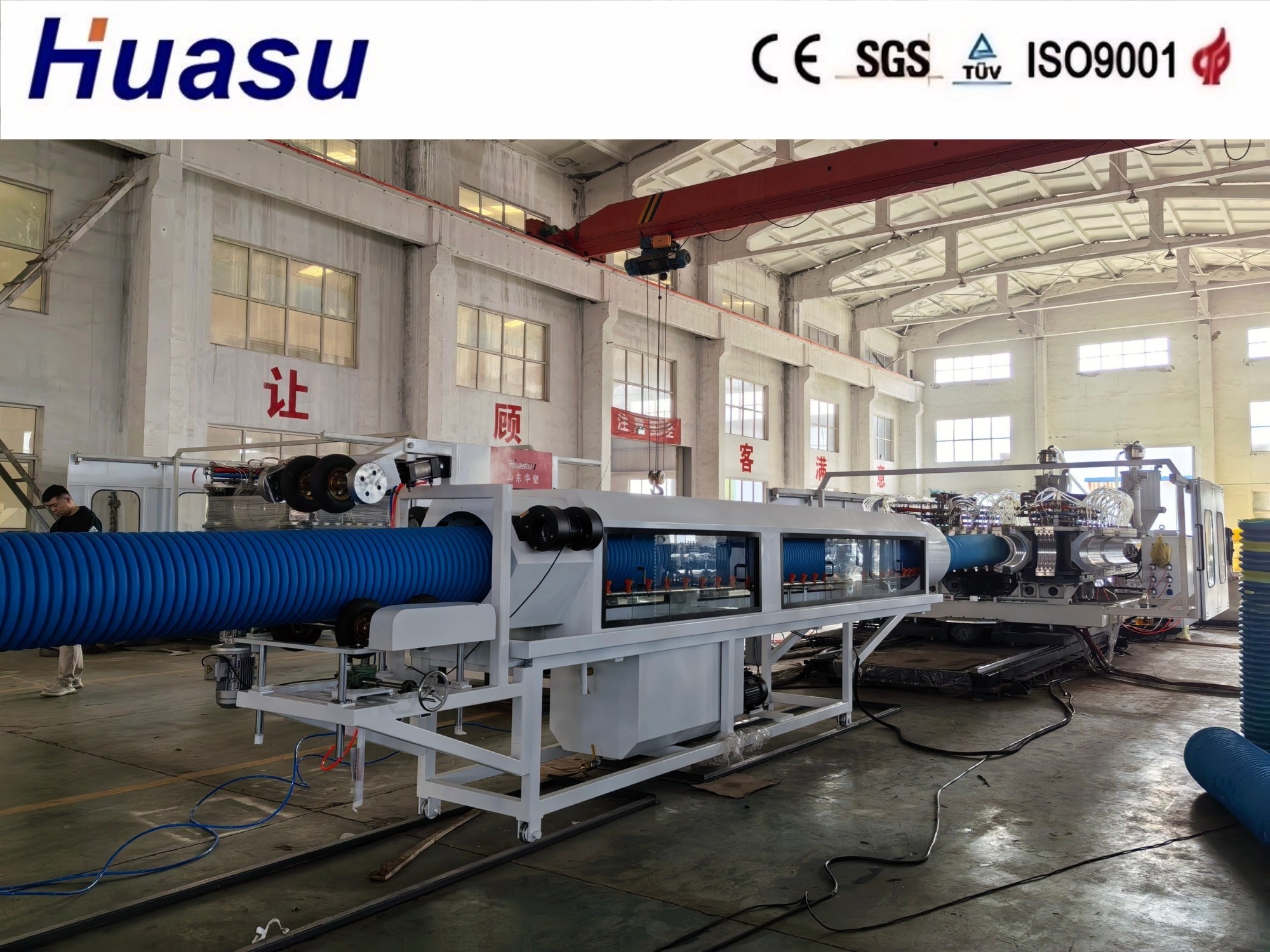 Линия производства гофрированных труб последнего поколения от Shandong HUASU представляет собой значительный технологический прогресс по сравнению с предыдущими моделями.Эта система третьего поколения обеспечивает 20-40% улучшения производительности экструдера и скорости производства труб.